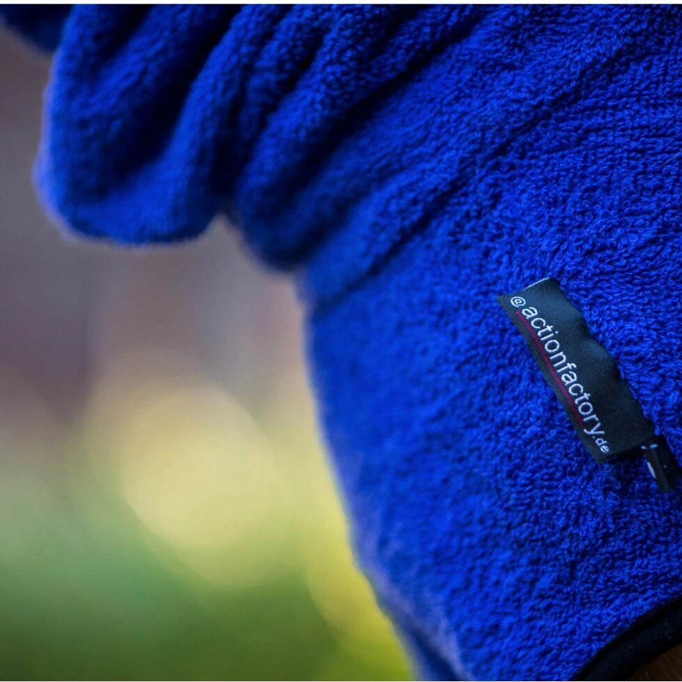 Der Trockenmantel für Hunde wird aus 100% Baumwoll-Frottee gefertigt. Die typischen Schlingen des Frotteegewebes vergrößern die Oberfläche des Stoffes, sodass das Gewebe wesentlich mehr Volumen als andere Gewebearten hat. Die Naturfaser Baumwolle speichert die Feuchtigkeit direkt in ihren Faser und saugt die Feuchtigkeit optimal auf. Es gibt nichts Besseres als einen hochwertigen Frottee aus 100% Baumwolle um den Hund abzutrocknen und die Feuchtigkeit vom Hund wegzuleiten.