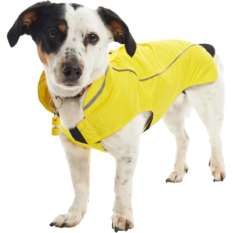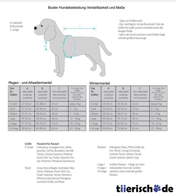 Der Hunderegenmantel Reflex von Buster ist aus wasser- und winddichtem Material. Er ist atmungsaktiv und strapazierfähig. Wenn draußen alles nass ist, verschafft der Regenmantel dem Hund einen perfekten Schutz gegen Regen und Schmutz.