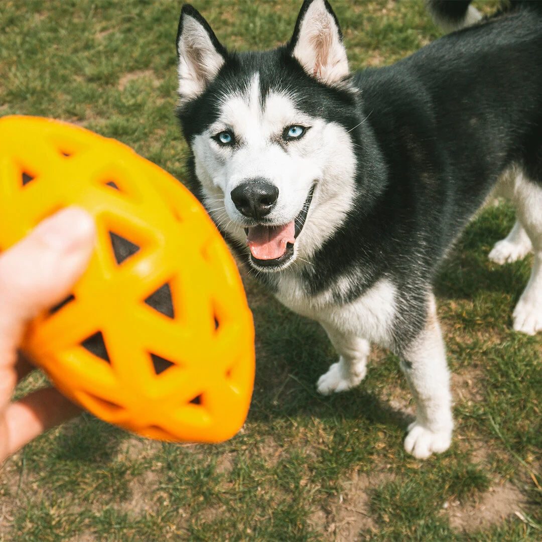 Der bite me Rugby für Hunde bietet alle Vorteile der Crack me up Serie von EBI. Die aerodynamische Apportierspielzeuge eignen sich hervorragend dazu, Deinem Hund Bewegung zu verschaffen. Die geometrische Form lädt dabei außerdem zum Kauen ein und leistet damit einen Beitrag zur Zahn- und Zahnfleischgesundheit des Vierbeiners.