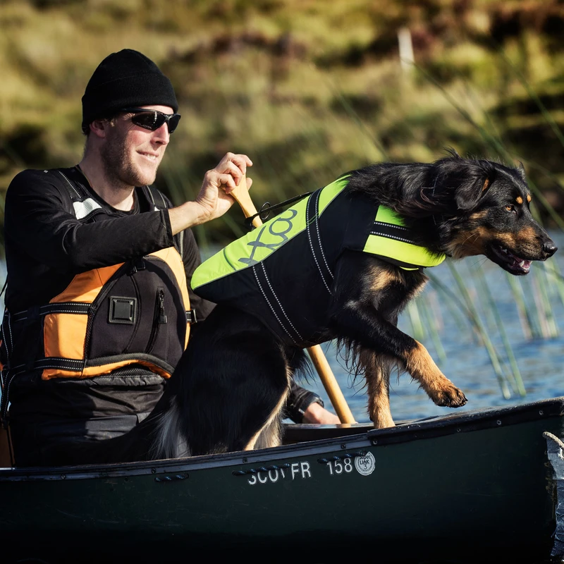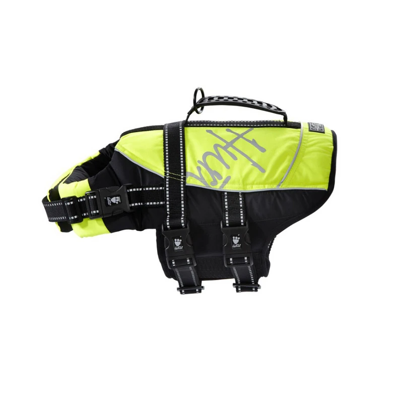 Das reflektierende Gewebe und 3M Reflektoren im Rückenbereich der Jacke bieten effektive Sichtbarkeit im Dunkeln. Das Produkt wurde zum Schwimmen, zur Wasserrettung, zur Rehabilitation, für Bootsfahrten und zum Jagen entworfen. Auf dem Schildchen am Kragen ist Platz für die Telefonnummer des Besitzers.
