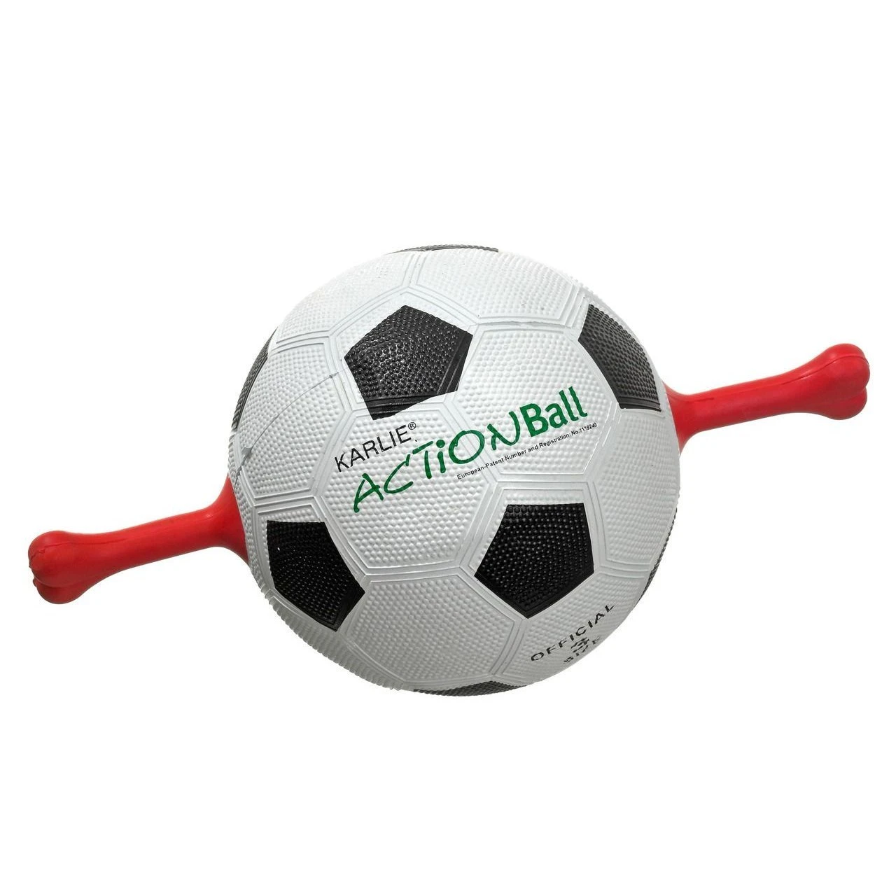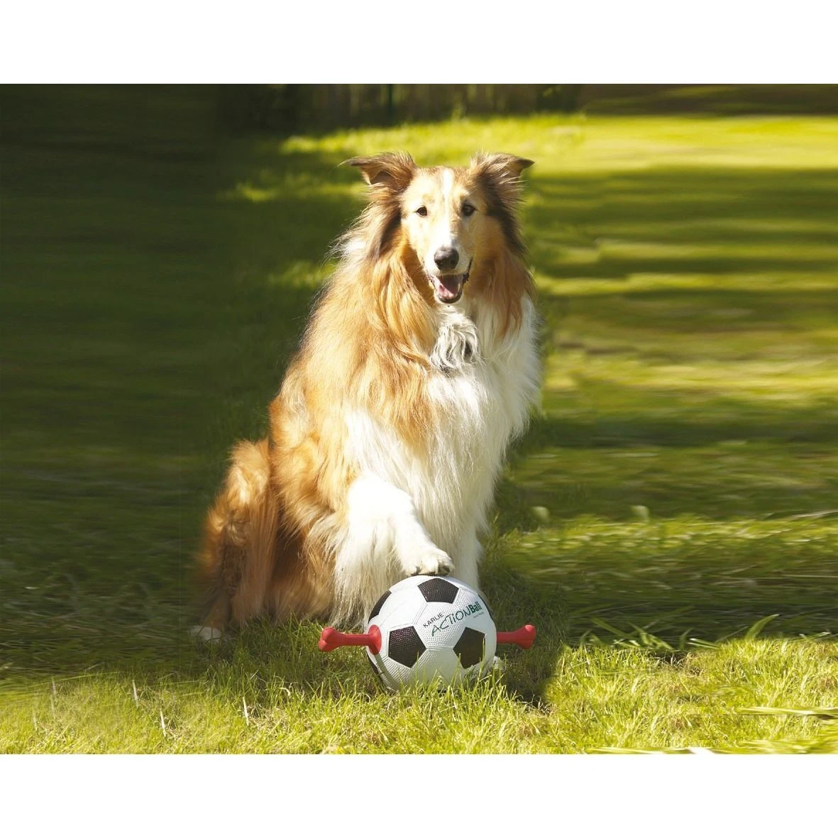 Der Hunde Action Ball – das Spiel für Mensch und Tier. Von Hundetrainern empfohlen und weltweit patentiert. Verbindet spielerisch über Stunden durch gemeinsames Spiel und Spaß. Die besonders artgerechte Konstruktion dieses Fussballs ermöglicht jedem Hund ein festes und sicheres Zugreifen durch die integrierten Vollgrummigriffe in Knochenform.