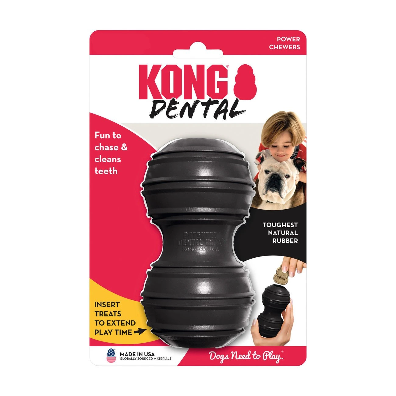 Das Hundespielzeug Extreme Dental von KONG ist dafür ausgelegt selbst Hunde mit einem starkem Biss standzuhalten. Die spezielle Rillenform sorgt dabei für eine natürliche Zahnreinigung. Für eine langanhaltende Beschäftigung können in den Rillen und im Inneren Snacks und Pasten gefüllt werden.
