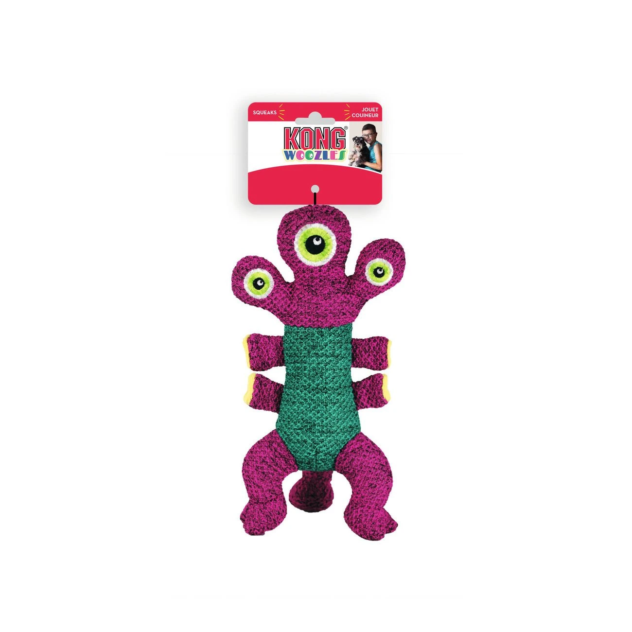 Das Hundespielzeug Woozles von Kong animiert die Hunde durch seine einzigartige Struktur und Form. Der Hund kann das Hundespielzeug leicht aufnehmen und schütteln. Durch das verstärkte Material ist das Spielzeug langlebiger und die liebenswerten außerirdischen Freunde verfügen über mehrere Quietscher und sorgen somit für anhaltende Beschäftigung.