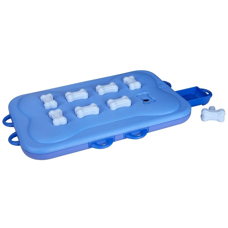 Das berühmte Dog Casino ist jetzt auch aus Kunststoff erhältlich. Die Plastik Variante ist pflegeleicht und leicht zu reinigen. Bei diesem Hundespielzeug von Nina Ottosson soll der Hund Leckerlies suchen, indem er Fächer in verschiedene Richtungen verschiebt. In jedem Fach gibt es eine Vertiefung, in der Leckerlies versteckt werden können. Sobald der Hund dies verstanden hat, kann man den Schwierigkeitsgrad mit Hilfe von Steckern, die zum Befestigen der Fächer genutzt werden können, erhöhen.