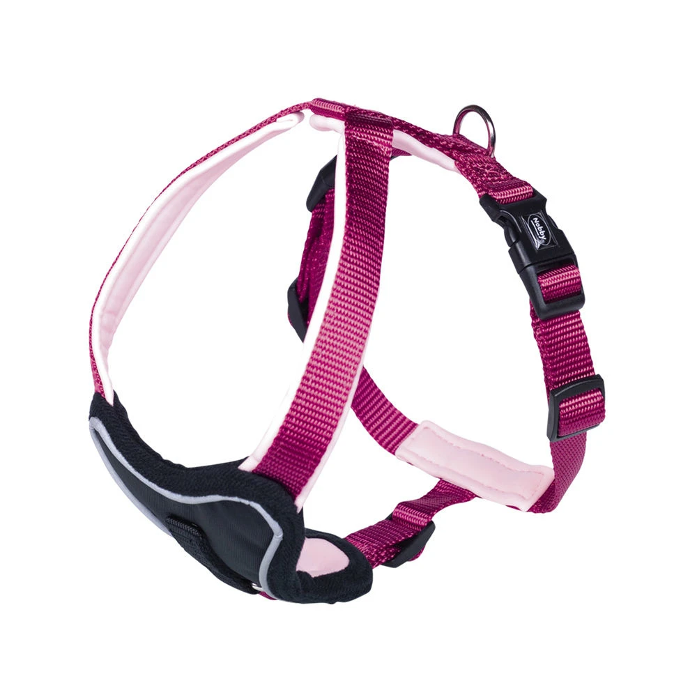 Zur Grundausstattung für Ihren Hund gehört ein alltagstaugliches, passgenaues Geschirr. Dieses Geschirr ist aus Nylon und bietet durch seine Neoprenpolsterung im Burst-, Hals- und Schulterbereich einen optimalen Tragekomfort. Der Bauchgurt ist stufenlos