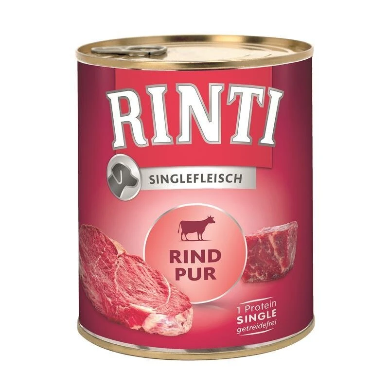 Das Singlefleisch Hundefutter Dose von Rinti in exklusiven Proteinsorten ist getreidefrei und sorgt für eine ausgewogene, proteinreiche Ernährung ohne Kohlenhydrate.