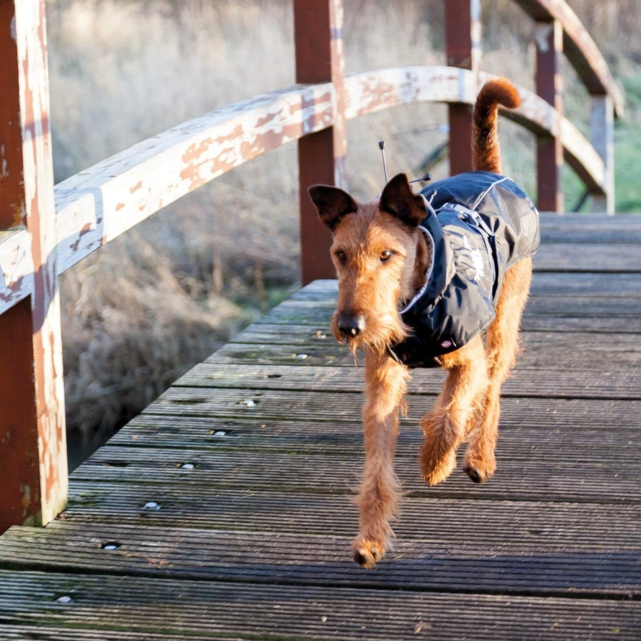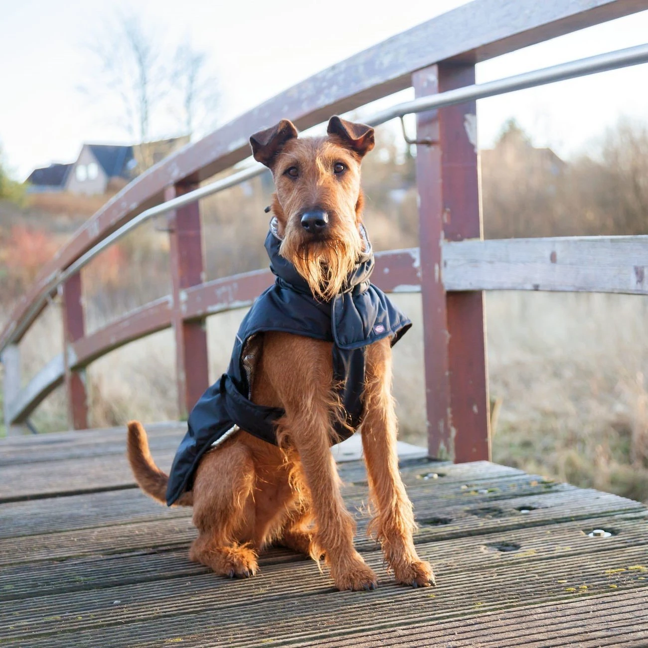 Der Hunde Wintermantel Explore von Trixie hat eine spezielle Innenbeschichtung, die die Körperwärme des Hundes reflektiert.
