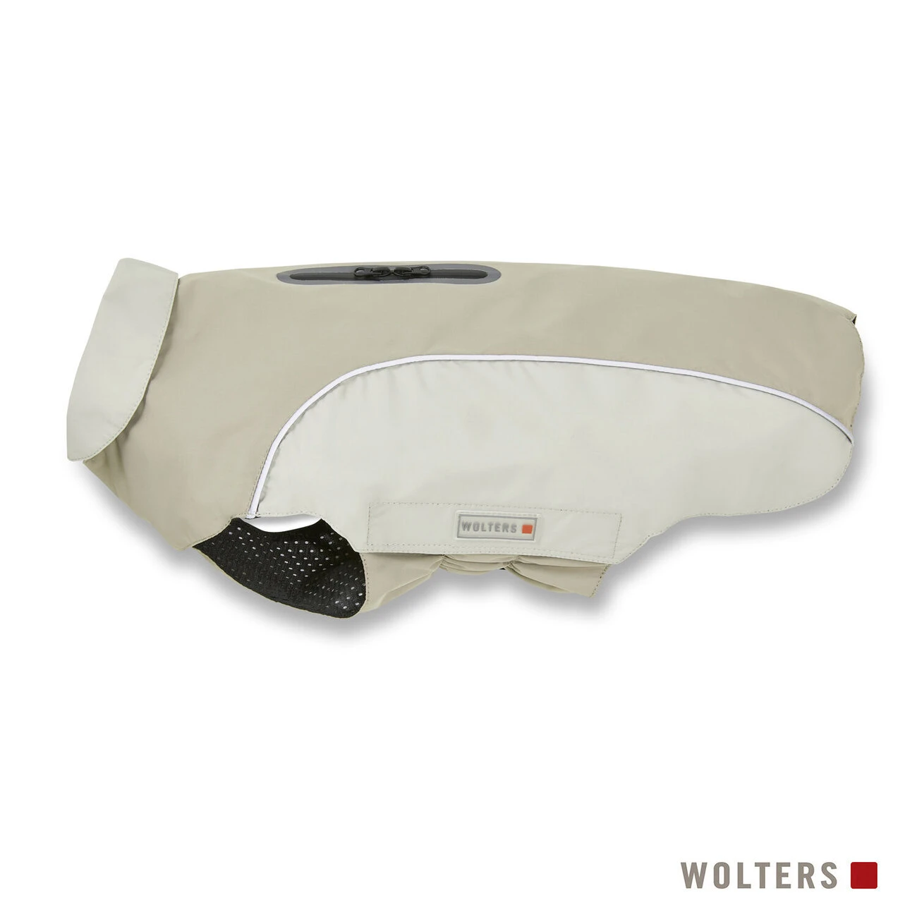 Das Modell Easy Rain hat eine Zusatzausstattung, die WOLTERS auf Anregung unserer Kunden umgesetzt hat. Sie wird alle erfreuen, die ihrem Hund unter dem Mantel ein Geschirr anlegen wollen. Da die Befestigungspunkte an den üblichen Geschirren sehr unterschiedlich ausfallen, hat WOLTERS das „zip-and-go“ Prinzip entwickelt! Hierbei wurde im Rückenteil des Mantels ein Reißverschluss eingearbeitet.